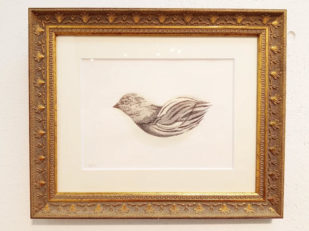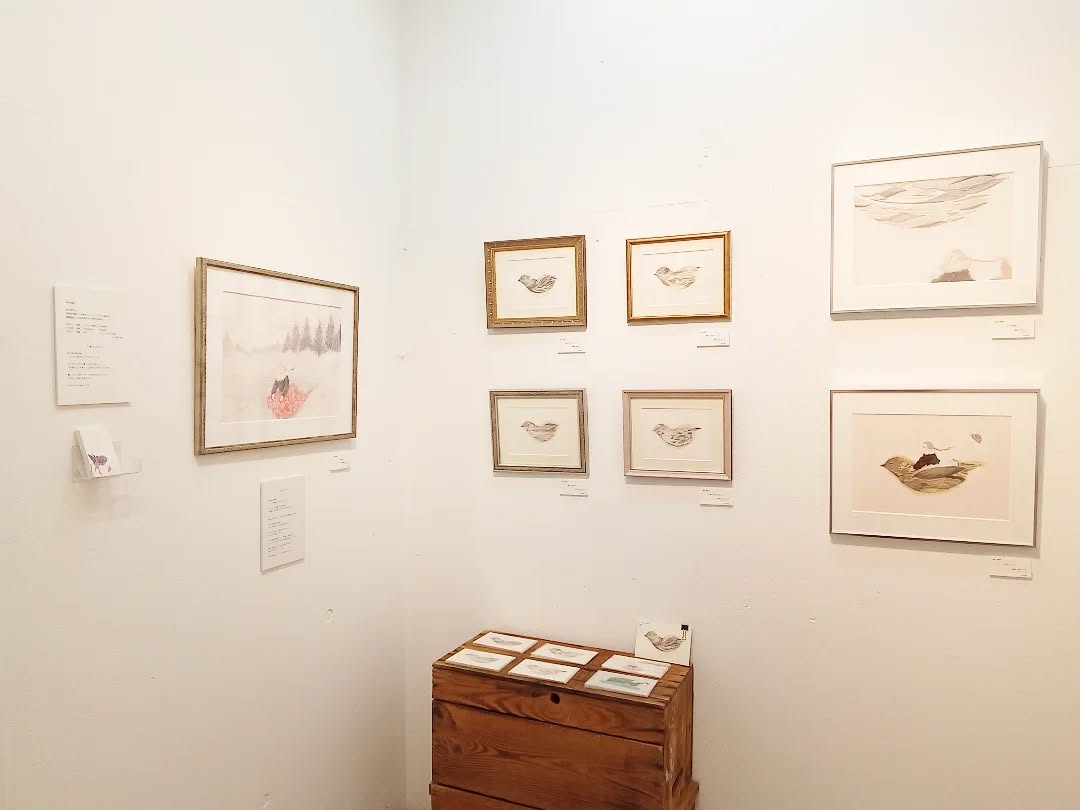 架空の鳥をテーマに、幻想的な世界を描きました。展示タイトルは『曇った日のうた』です。
